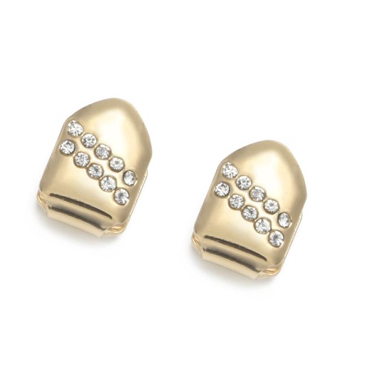 2x 18-karatowy pozłacany kryształowy pojedynczy grill Halloweenowe grille złote