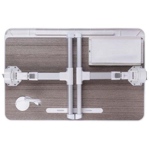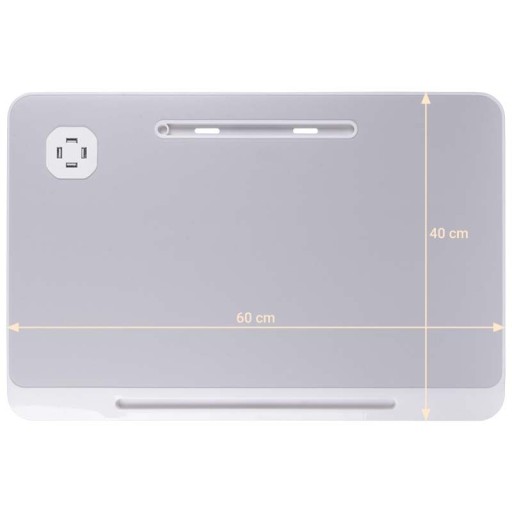 D1 to rewelacyjny składany stolik do łóżka z czterema portami USB, lampką do oświetlenia pulpitu, wiatraczkiem uprzyjemniającym pracę w upalne dni, szufladą na podręczne akcesoria oraz ✅ regulacją wysokości i kąta nachylenia dla jak największej ergonomii podczas użytkowania. W zestawie znajduje się również pulpit, o który możemy wygodnie oprzeć np. książkę, tablet albo telefon.