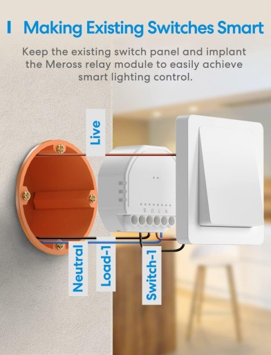 - PRZEWÓD NEUTRALNY WYMAGANY DLA PRZEŁĄCZNIKA WIFI MEROSS: Przed zakupem upewnij się, że oryginalny przełącznik ma przewód neutralny.