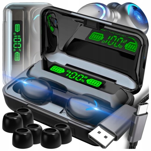 ⭐BEZPRZEWODOWE DOUSZNE SŁUCHAWKI WIRELESS BLUETOOTH BT 5.0 ETUI + POWERBANK⭐