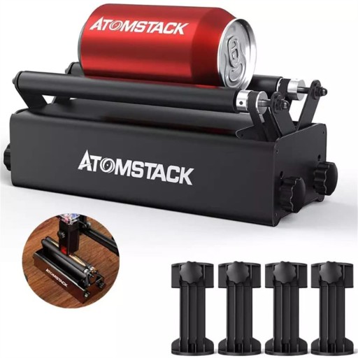 ATOMSTACK R3 Laserowy wałek obrotowy Grawer laserowy Wałek obrotowy osi Y z obrotem o 360 ° do grawerowania laserowego Puszki na przedmioty cylindryczne (zawiera 4 nóżki podnoszące)