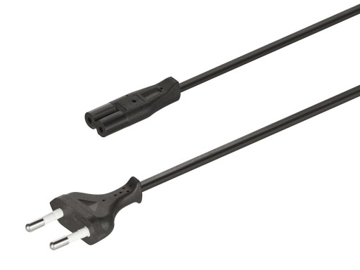 - Napięcie sieciowe gniazda C7 2-biegun, co pozwala na podłączenie do wielu rodzajów