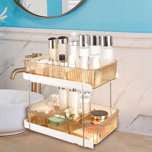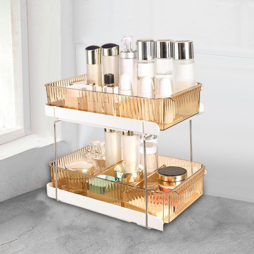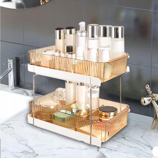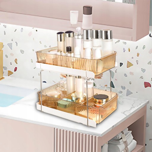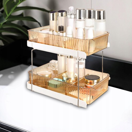 Wielofunkcyjny stojak do przechowywania: 2-poziomowa półka na biurko, kosmetyki do przechowywania, produkty do makijażu, akcesoria do włosów, biżuteria, materiały biurowe, przybory kuchenne itp.