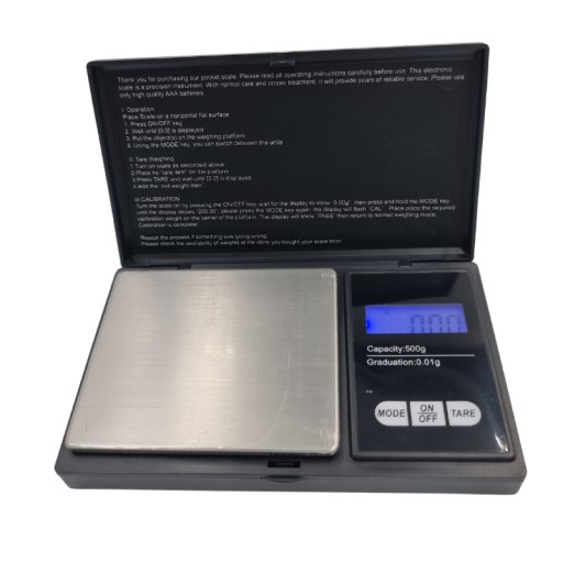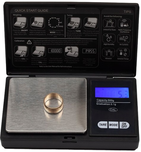 Elektroniczna Waga Jubilerska W-005 0,1g/500g wyświetlacz 3,1X1,1 cm