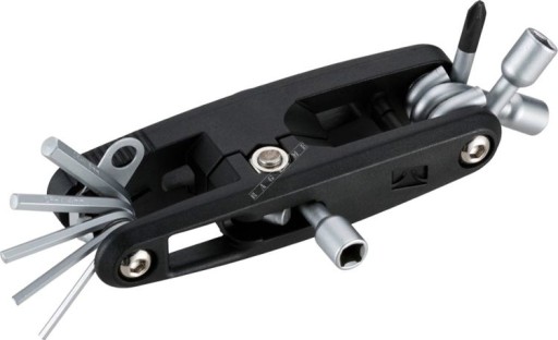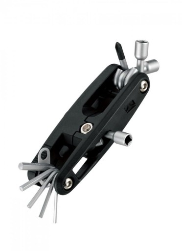 Specjalistyczny klucz posiadajcy wiele wbudowanych końcówek: klucze imbusowe, 2 kluczyki perkusyjne, wkrętak, "chwytak" do motylków od statywów, oczko do powieszenia.
