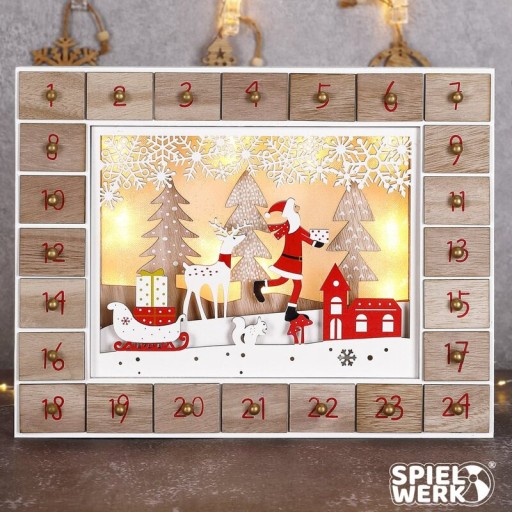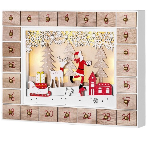 ДЕРЕВЯННЫЙ АДВЕНТ-КАЛЕНДАРЬ САНТА-КЛАУС LED