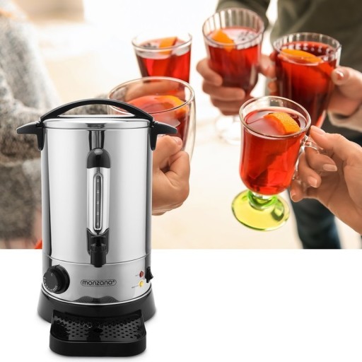 Skala poziomu napełnienia w dowolnym momencie pokazuje ile filiżanek jest dostępnych. Za pomocą termostatu możesz dokładnie określić, jak ciepły / gorący powinien być Twój napój (30-110 stopni). Podgrzewacz posiada pokrywę ze stali nierdzewnej z urządzeniem blokującym. Napełnianie warnika jest łatwe dzięki izolowanemu termicznie uchwytowi na pokrywce. Bardzo szeroka podstawa garnka zapewnia wysoki poziom stabilności. Baw się dobrze przy gorącym napoju w zimnych porach roku.