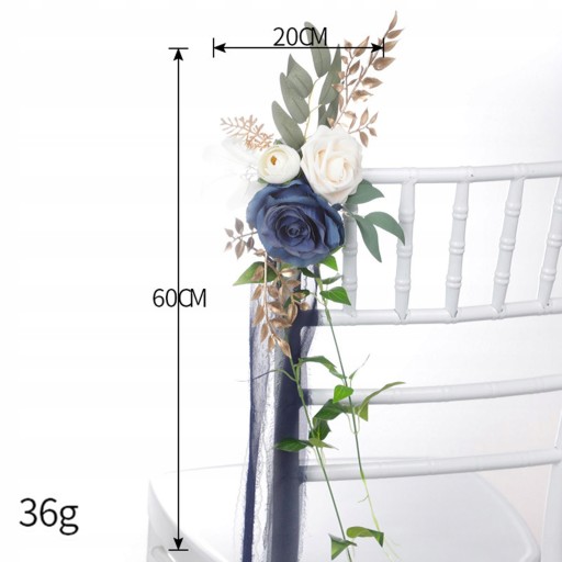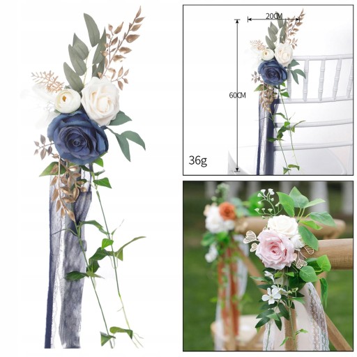 PEW Kwiaty z Wstążkami Dekoracje Krzeseł na Ceremonię Uroczystości Ślub Niebieski