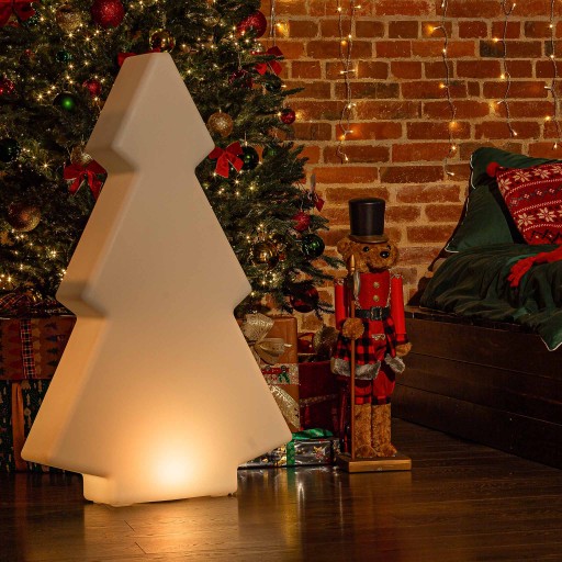 Bezprzewodowa lampa w kształcie choinki o wysokości 112 cm wykonana z polietylenu ma matowe wykończenie. Materiał jest łatwy do utrzymania w czystości. Między innymi dzięki temu, nawet gdy choinka stoi na dworze, nie ma problemu z jej wyczyszczeniem. Wszystkie zalety drzewka sprawiają, że możesz wykorzystać je do ozdoby pokoju dziecięcego, salonu, sypialni i przedpokoju. Wysokość 112 cm pozwala też na umieszczenie jej na większych przestrzeniach. Chociażby takich jak hole recepcyjny, biuro, restauracja czy wystawa sklepowa. Warto też wspomnieć o takich zaletach jak wodoszczelność i mrozoodporność. To one umożliwiają ustawienie podświetlanej choinki LED w ogrodzie, na tarasie i balkonie. Pięknie prezentowała się będzie także przed wejściem do domu, biura czy galerii handlowej.