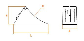Wymiary: L = 332 mm, B = 125 mm, H = 150 mm, R = 355 mm