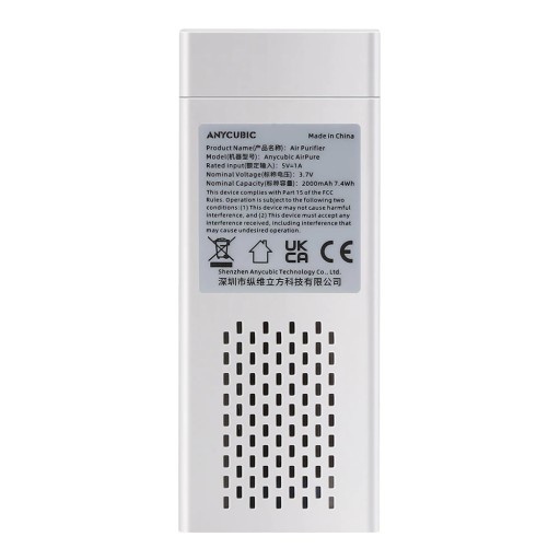Oczyszczacz powietrza Anycubic z filtrem z węglem aktywnym. Jest to uniwersalne urządzenie do pochłaniania drażniącego zapachu żywicy podczas drukowania. Zapewnia to świeże i bezpieczne użytkownie drukarki w domu. Węgiel aktywny pochłania i filtruje drażniący zapach żywicy. Oczyszczacz posiada mocny wentylator pracujący z szybkością 5000 rpm, dodatkowo wyróżnia się cichą pracą (poniżej 45 decybeli) oraz długim czasem pracy do 30 000 h.