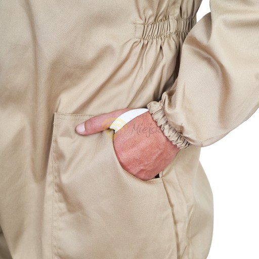Mocny ściągacz w pasie oraz podwójne, zachodzące za siebie zamki przykryte rzepem przy kapeluszu stanowią silną ochronę przed użądleniami. Wersja Standard odzieży pszczelarskiej wyposażona została w plastikowe zamki renomowanej firmy YKK.