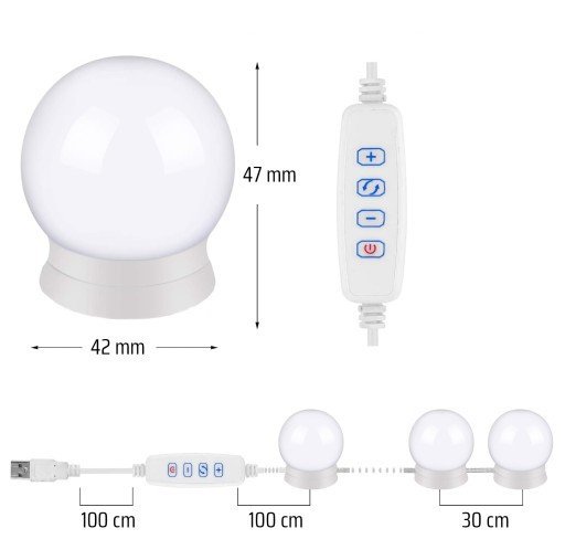 Montaż lampek jest niezwykle prosty, a przy tym bardzo wszechstronny. Dzięki dwustronnej taśmie samoprzylepnej, dołączonej w zestawie, możesz zamontować lampki dosłownie wszędzie - na swojej toaletce, ścianie czy innych powierzchniach. Przy tym, dwumetrowy przewód da Ci komfort użytkowania i umożliwi zamontowanie lampek dokładnie tam, gdzie chcesz.