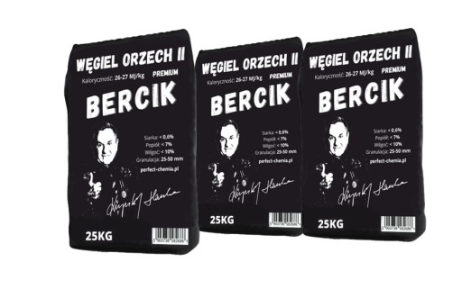 WĘGIEL ORZECH "BERCIK" 25-50mm - OFERTA DOTYCZY PALETY 250 KG - 10 WORKÓW PO 25 KG
