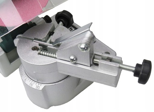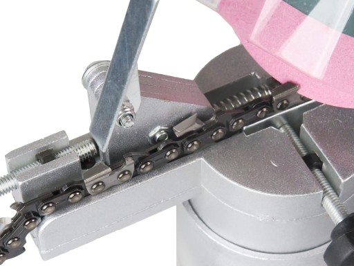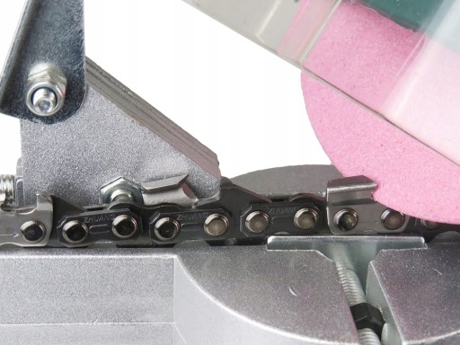 Ostrzałka wyposażona w przechylane imadło umożliwiające ostrzenie łańcuchów pilarek i pił bez konieczności zmiany miejsc zamocowań.