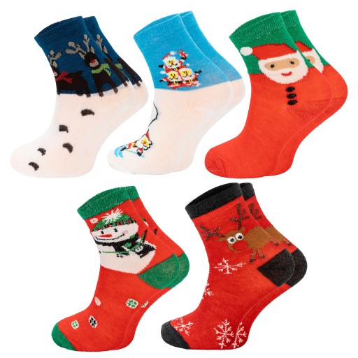 Skarpetki świąteczne 5 par ZESTAW PREZENT OZDOBA KOLOROWE