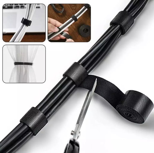 Taśma do kabli jest wielokrotnego użytku, mocowanie na rzep pozwala zapinać i odpinać kable, kiedy tylko tego potrzebujemy.