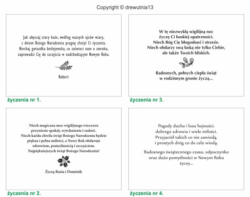 - numer życzeń do środka oraz od kogo je podpisać