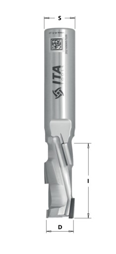 Frez DIA z ostrzami PCD ( PKD / Diament przemysłowy ) osadzonymi po spirali na gniazdach węglikowych. Korpus wykonany z najwyższej jakości stali. Do użytku na CNC lub frezarkach górno wrzecionowych. Odpowiednia geometria ostrzy sprawia że zęby dociskają laminat górny od góry, i zarówno dolny od dołu, co minimalizuje wyrywanie laminatu. - wykorzystywany przy pracy w drewnie, płycie wiórowe, MDF i tworzywach sztucznych. Posiada ostrze wiercące HM.