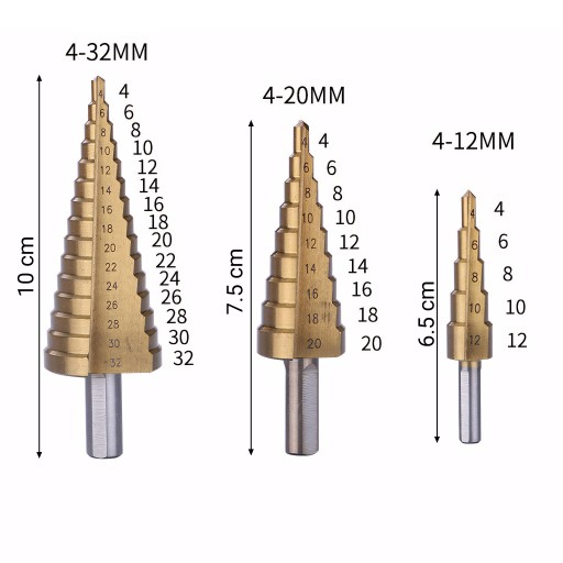 WIERTŁA STOŻKOWE STOPNIOWE 4-32MM ZESTAW WIERTŁO HSS DO METALU 3 SZTUKI