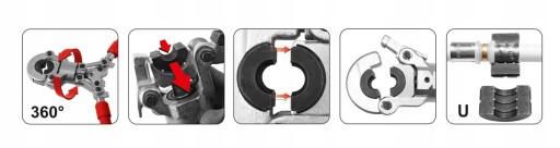 Teleskopowa konstrukcja ramion po ich wysunięciu ułatwia zaciśnięcie z dużą siłą co daje pewność w połączeniach