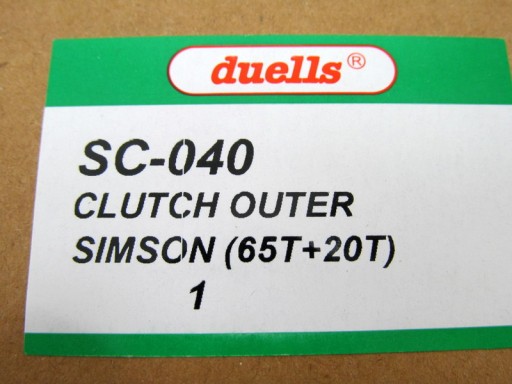 Przedmiotem oferty jest widoczny na zdjęciu kosz sprzęgłowy DUELLS 65 zębów wraz z małym trybem 20 zębów do Simsona S51 Enduro SR50 Skuter