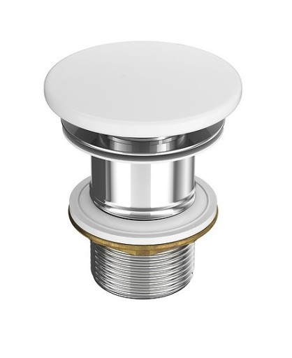 - Korek ceramiczny biały, mechanizm wykonany z trwałego mosiądzu, bez możliwości zamknięcia odpływu i wyposażony w silikonowe uszczelki.