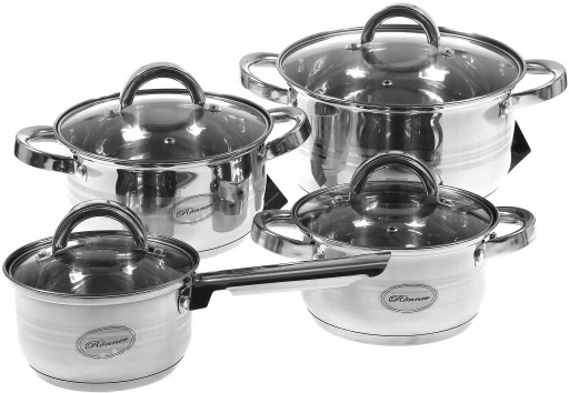 - Zestaw garnków z trwałej wysokiej jakości stali nierdzewnej.
