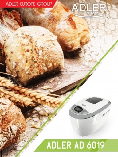 Maszyna do chleba Adler AD 6019 to Twoja alternatywa dla pieczywa dostępnego w sklepach. Jeśli tęsknisz za smakiem "prawdziwego chleba" lub wymagasz, by był on przygotowany ze składników wysokiej jakości, możesz upiec go wygodnie w swoim domu. Korzystając z maszyny do chleba AD 6019 możesz wybierać spośród 15 trybów przygotowania ciasta i pieczenia. Bez względu na to, czy planujesz upiec bochenek pełnoziarnistego chleba, przygotować pyszną marmoladę, czy też lekkie pieczywo w stylu francuskim, za każdym razem przekonasz się, że nie stwarza to żadnych problemów. Ciesz się smakiem świeżo wypiekanych produktów, w których to Ty decydujesz o wszystkich składnikach trafiających na stół Twojej rodziny!