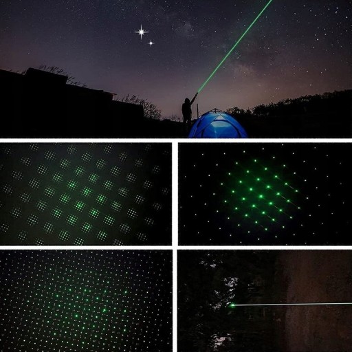 MOCNY WSKAŹNIK LASEROWY LASER POINTER ZIELONY + KABEL MICRO USB + DODATKOWA SOCZEWKA