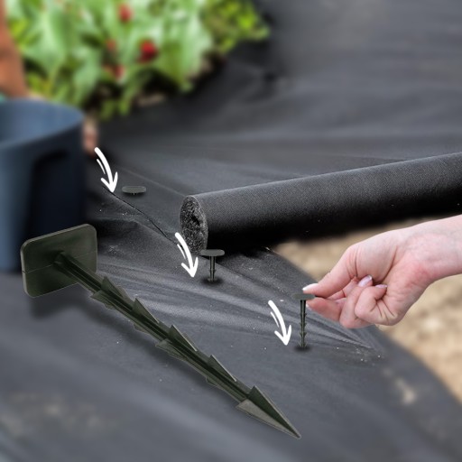 ✔️ proste mocowanie agrowłokniny, agrotkaniny, siatek do podłoża i geowłókniny