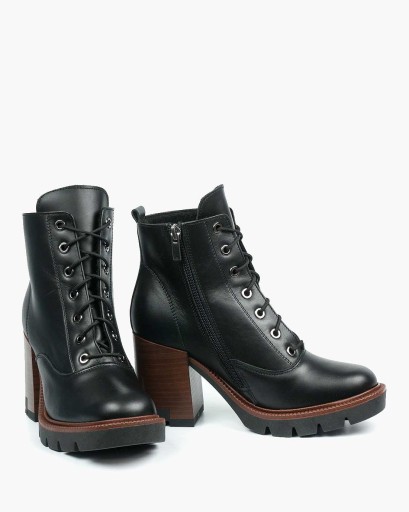 Czarne botki damskie skórzane