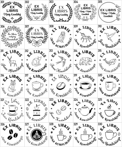 Przygotowaliśmy dla Ciebie 360 wzorów exlibris - na wybranym przez Ciebie wzorze umieścimy Twoje imię i nazwisko lub innej osoby, którą chcesz obdarować takim prezentem :)