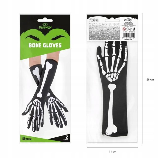 RĘKAWICZKI KOŚCI 36cm STRÓJ KOŚCIOTRUP ŚMIERĆ DIABEŁ