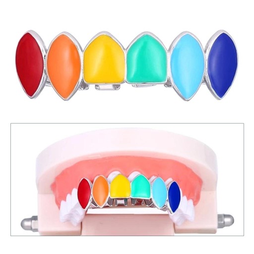 Kolorowe grille hip z górnymi i dolnymi zębami, do osobistego noszenia lub prezentu dla przyjaciół