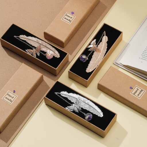 Każda zakładka z piór motyla jest zapakowana w ręcznie robione pudełko upominkowe z papieru pakowego i jest spersonalizowanym prezentem dla pań, żony, kochanki, córek, dzieci, nauczycieli, dziewczyny, aby wyrazić duchową opiekę, gratulacje, inspirację, pozdrowienia z przyjaźni itp.