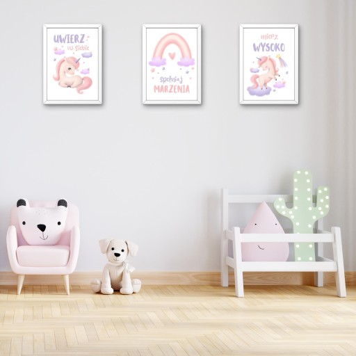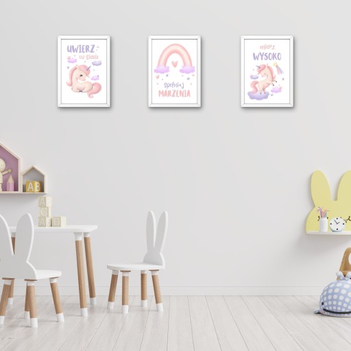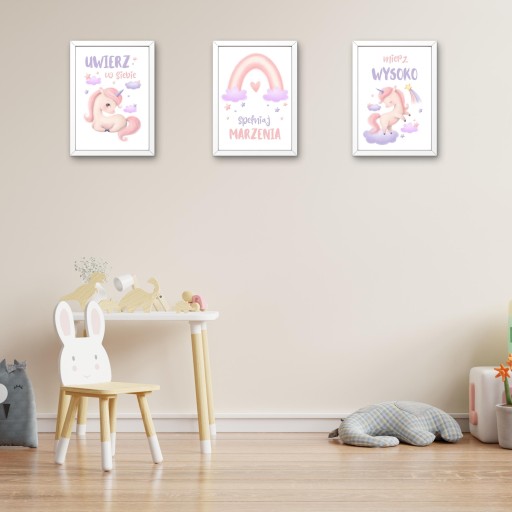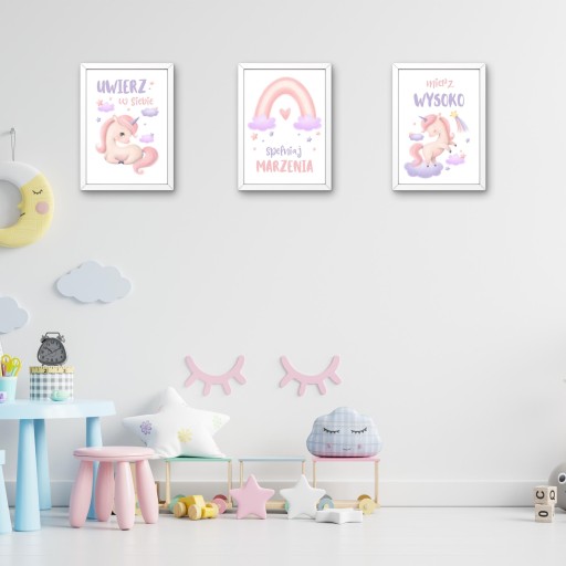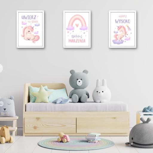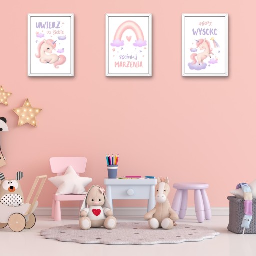 Przepiękny zestaw plakatów z motywem Jednorożców to idealna dekoracja do pokoju każdej dziewczynki.