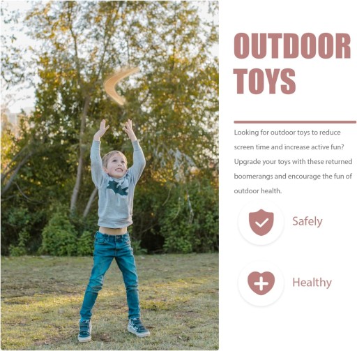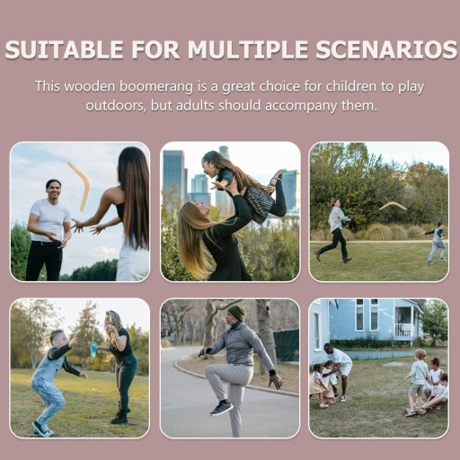 Ten drewniany bumerang to wietny wybór dla dzieci bawicych si na wieym powietrzu ale doroli powinni im towarzyszy. Konstrukcja w ksztacie litery V wietny bumerang sportowy po prostu zaprojektowany dla dokadnego zwrotu. atwy do rzucenia drewniany bumerang jest odpowiedni dla dorosych lub dzieci. Jest wykonany starannie zapewnia e zawsze wróci po wyrzuceniu. Wybierz otwarty obszar do lotu tym drewnianym bumerangiem tylko lekki lub umiarkowany wiatr.