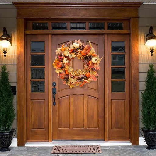 Wszechstronny jesienny wieniec - więcej niż tylko wieniec na drzwi wejściowe Dzięki tradycyjnej palecie kolorów ten jesienny wieniec nadaje się do drzwi wejściowych, okien, kominków, ścian, biur, sklepów detalicznych i nie tylko.