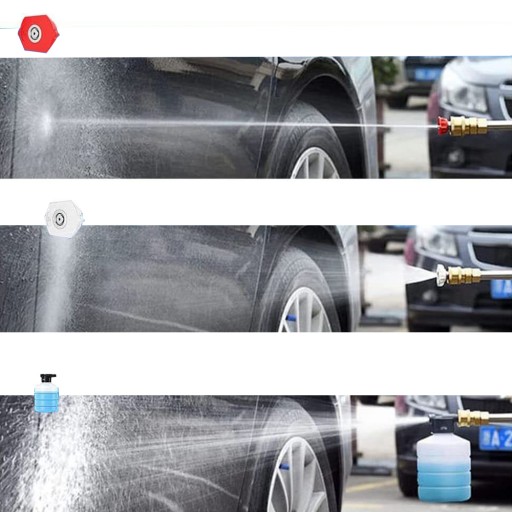 ✅Ta elektryczna myjka ciśnieniowa ma 3 różne wzory dysz: 0°, 40° i miskę piankową. Dzięki wielu dyszom natryskowym można przełączać się pomiędzy różnymi poziomami intensywności strumienia wody, co pozwala zaoszczędzić dużo wody.