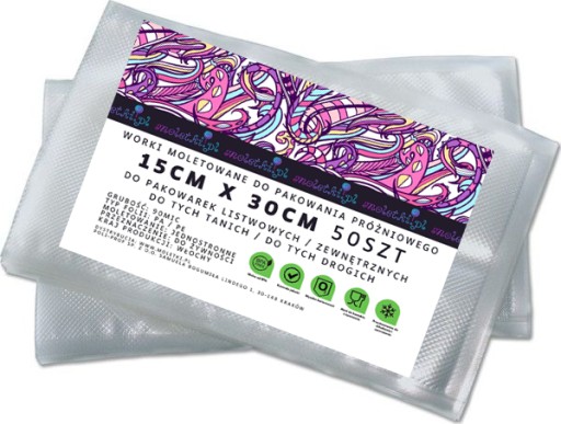 .Worki próżniowe moletowane moletki stworzone z wysokiej jakości folii, bardzo grube nie przepuszczające aromatów oraz zachowujące długo świeżość pakowanej żywności. Nadają się do zgrzewarek próżniowych zewnętrznych listwowych.