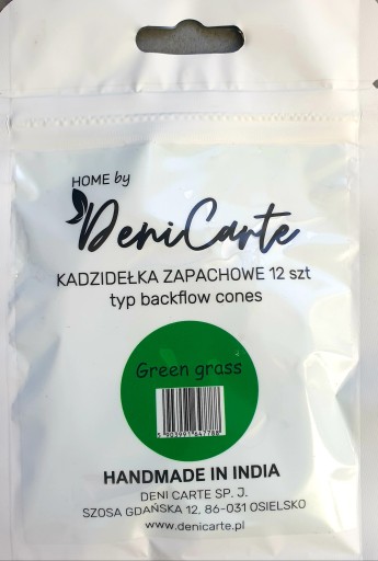 1x 12 sztuk kadzideł indyjskich naturalnych o zapachu GREEN GRASS
