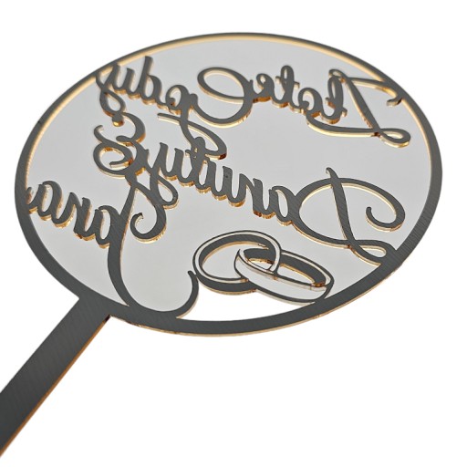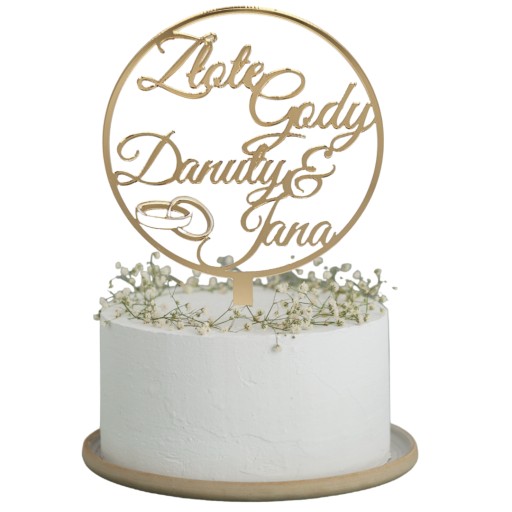 Nasz topper został wykonany z wysokiej jakości materiałów, z dbałością o szczegóły. Złociste lustro to nie tylko eleganckie, ale też symbolizuje wyjątkową 50. rocznicę ślubu, nazywaną Złotymi Godami.