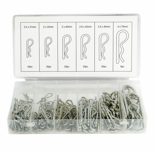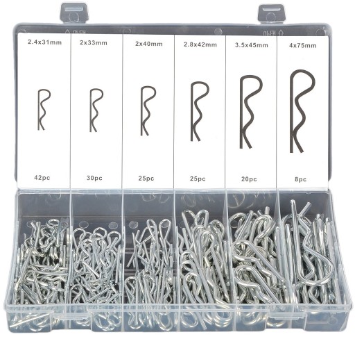 W wygodnym zamykanym organizerze znajdziemy 6 różnych rozmiarów zawleczek od 2.4 x 31mm do 4 x 75mm