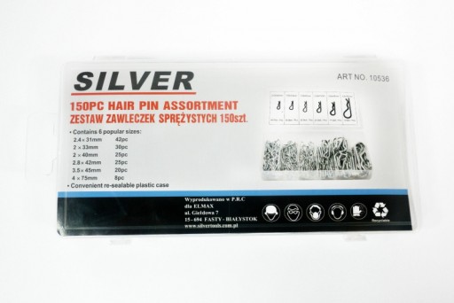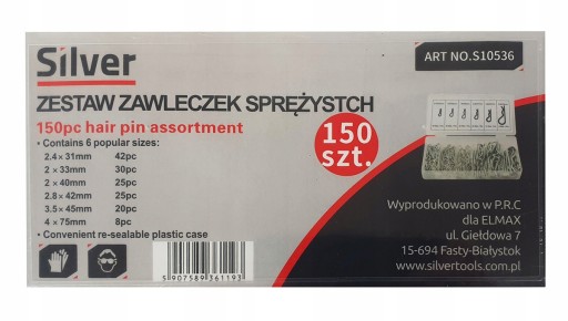 Zestaw 150 sztuk zawleczek sprężynowych firmy SILVER.