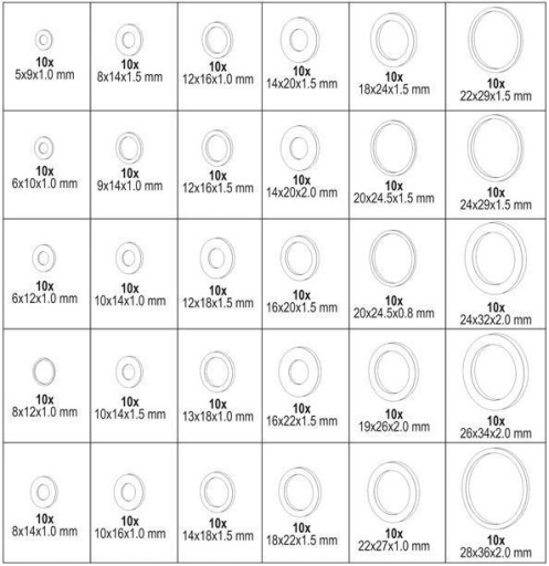 Zestaw 300 sztuk podkładek aluminiowych pod korki spustowe oleju.