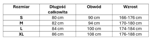 - Rozmiar L: długość całkowita 84 cm, obwód 100 cm