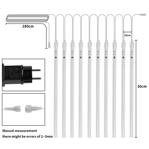 Oprawa składa się z 10 rurek po 24 diody LED każda, łącznie 240 diod LED. Ultra jasne diody LED zapewniają kąt świecenia 360 stopni, a światła w każdej tubie włączają się i wyłączają jedna po drugiej z szybkością spadającej gwiazdy lub padającego deszczu na nocnym niebie. Żywy wyświetlacz spadającej gwiazdy oświetli Twoją noc w magiczny i romantyczny sposób