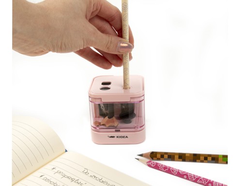 Elektryczna podwójna temperówka od Kidea idealna do szybkiego ostrzenia ołówków i kredek w dwóch grubościach 9-12 mm oraz 6-8 mm.