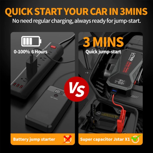 ✅ Bardziej bezpieczny i niezawodny. Superkondensator nie zapali się, nie wybrzuszy i nie eksploduje w warunkach wysokiej temperatury, upuszczania lub wstrząsania. Uwolnij się od zmartwień, przechowując Jstar X1 w samochodzie nawet w upalne lato.
